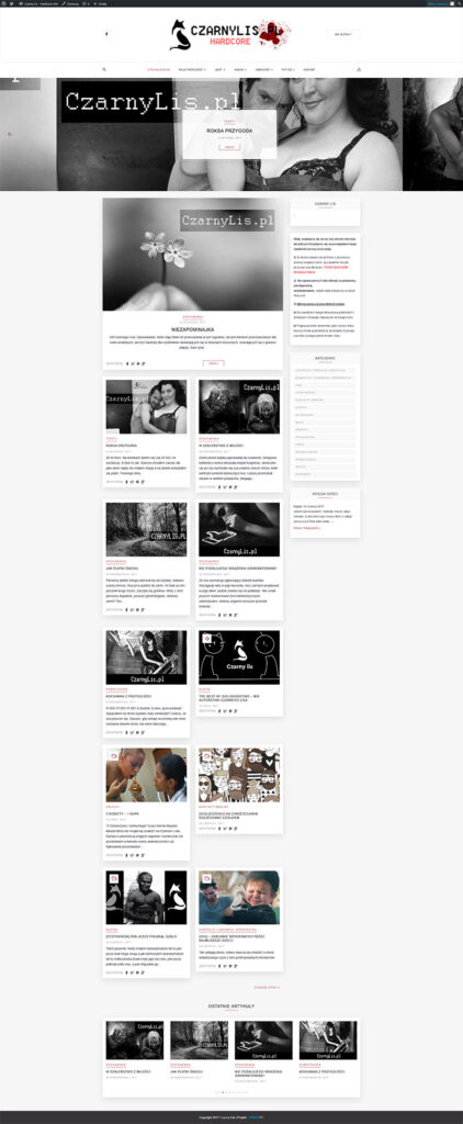 Zaprojektowaliśmy Blog dla tajemniczego i anonimowego pisarza jakim jest Czarny Lis. Osoba która tworzy tą witrynę gustuje zdecydowanie w ciemnych kolorach w których miał być utrzymany styl graficzny omawianego bloga